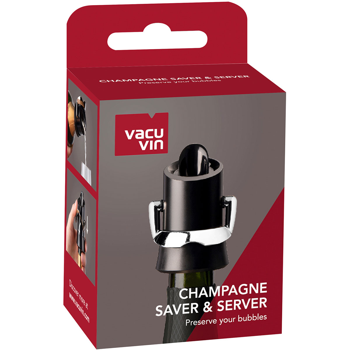 Mit dem Champagne Saver kann man eine geöffnete Flasche Champagner oder Sekt ohne merkbaren Verlust der Kohlensäure mehrmals öffnen und schließen.
