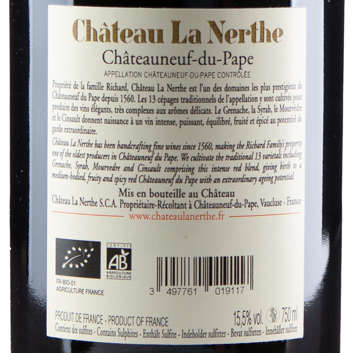 This classic Côtes du Rhône of the exceptional 2017 vintage is produced by one of the oldest wineries of the Châteauneuf-du-Pape appellation (AOC) that was founded in 1936. The Château La Nerthe estate had its origins in the 14th century and owns one of the region’s largest vineyards, covering an area of more than 222 acres.