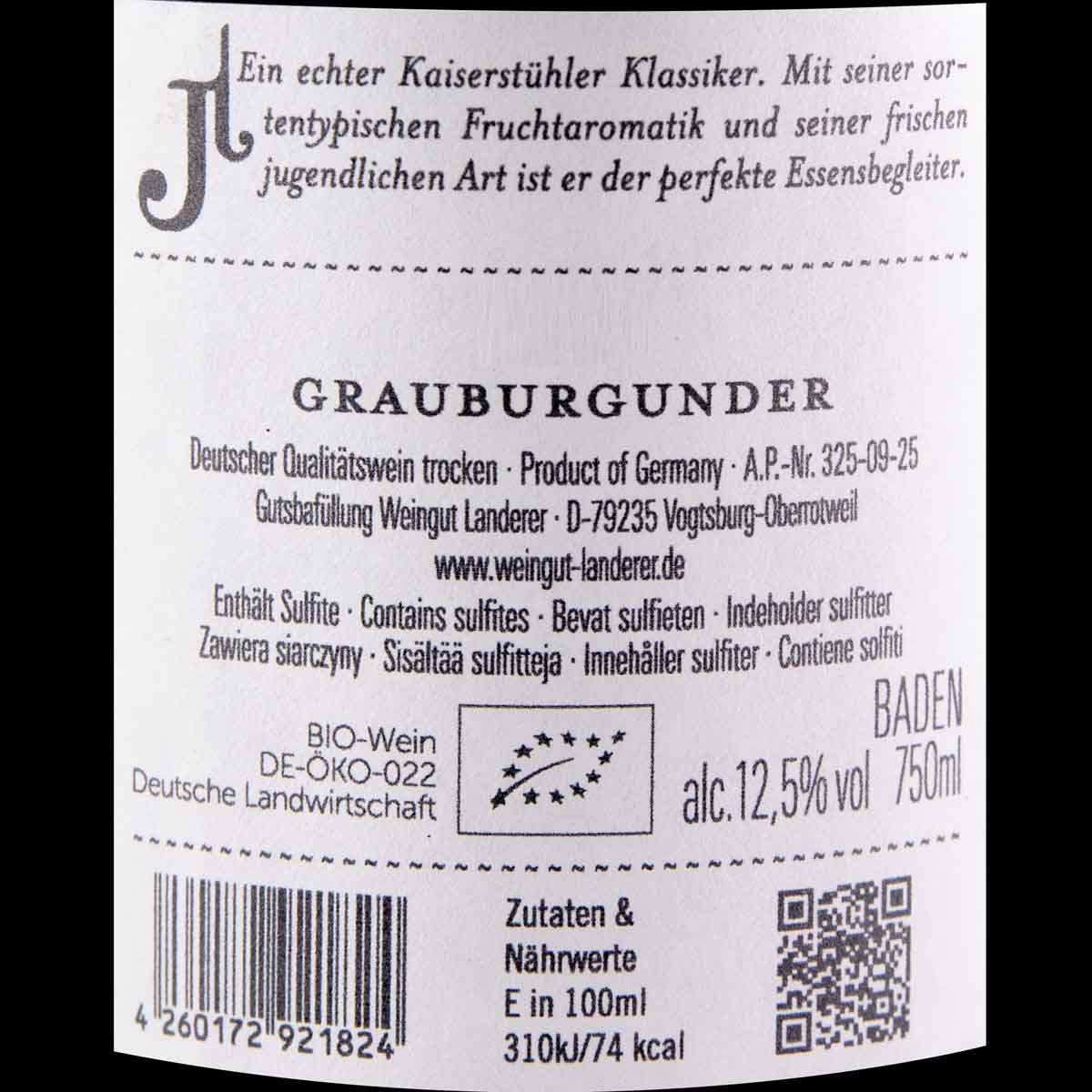 The Landerer Kaiserstuhl Grauburgunder vom Löss dry is a great example of this. Pinot Gris from the Kaiserstuhl: always a revelation. Germany's warmest region, northwest of Freiburg in Breisgrau, is characterized by volcanic rock and is therefore the ideal location for highly aromatic white wines.