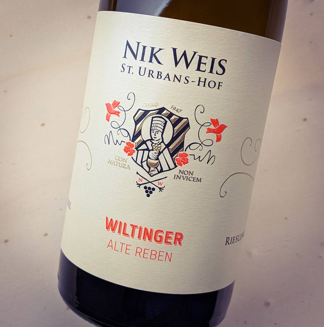 Devonian slate soils form the basis of this single-varietal Riesling from the Moselle. Notes of gooseberry and citrus fruit as well as beautiful nuances of herbs characterize the bouquet of Nik Weis St. Urbans-Hof Wiltinger Alte Reben. On the palate, the white wine is animating, pleasantly light and has a lovely acidity.