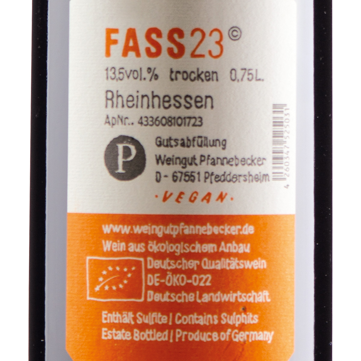 Der Pfannebecker "Fass 23" QbA trocken ist eine klassische Cuvée aus Cabernet Sauvignon und Merlot. Auf dem Weingut Pfannebecker setzt die neue Generation seit über zehn Jahren auf ökologischen Weinbau und eine Handselektion der Trauben. Mit größter Sorgfalt entstehen herausragende Weine.
