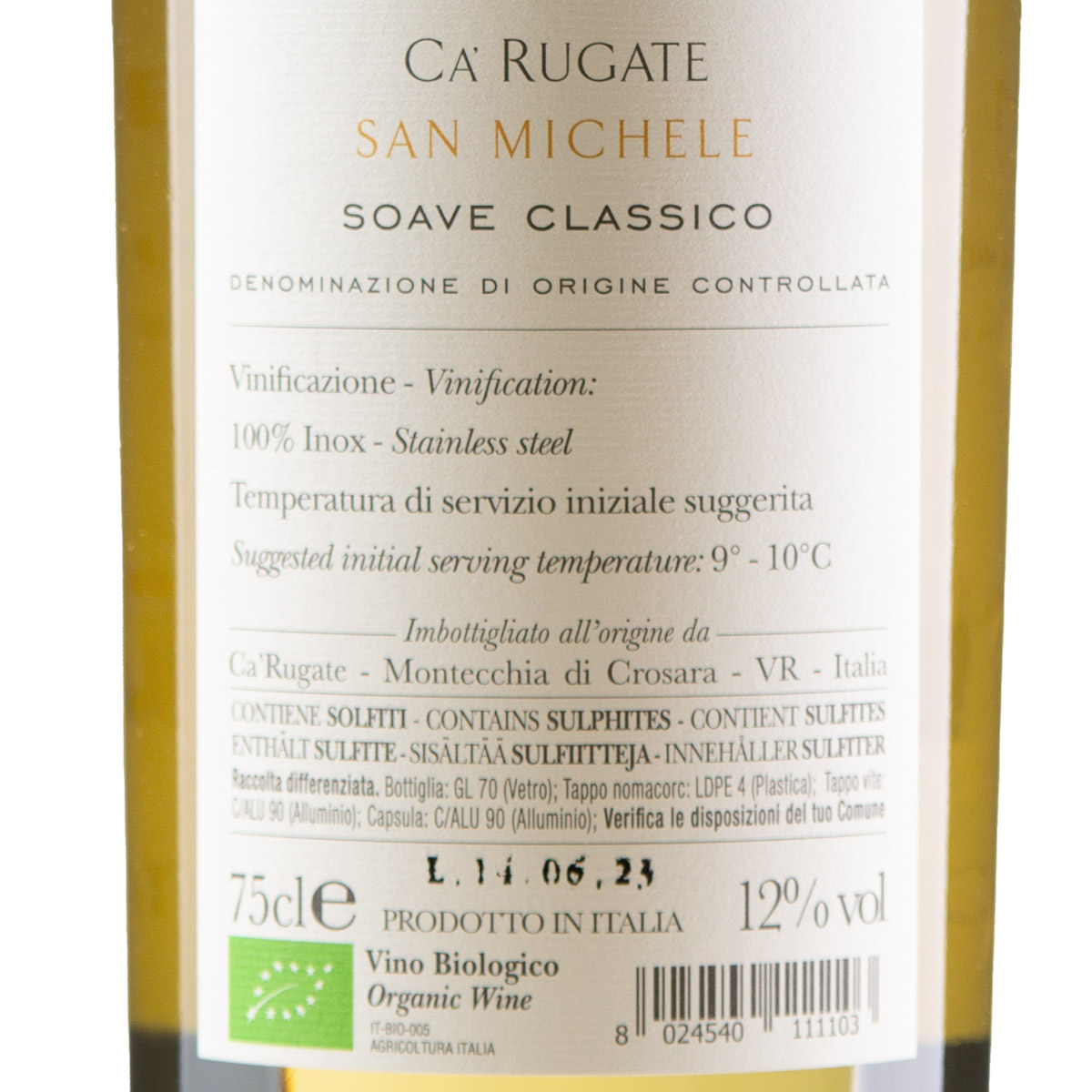 Im Glas zeigt sich der Ca' Rugate Soave Classico San Michele DOC strohgelb. Feine und delikate Aromen von süßen Wildblumen, Kamille, Holunderblüten und Iris umspielen die Nase. Am Gaumen ist der Weißwein angenehm mit einem süßen Mandelnachgeschmack.