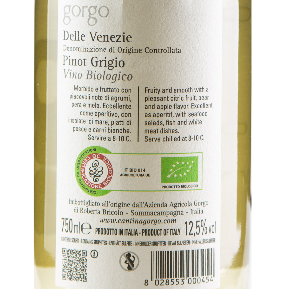 Der Gorgo Pinot Grigio DOC delle Venezie leuchtet zart strohgelb, mit kristallklaren Perlreflexen. In der Nase ist er fruchtig, mit angenehmen Noten von Zitrusfrüchten, Birne und grünem Apfel. Der Geschmack ist weich, trocken, frisch, spritzig und harmonisch. Ein besonderer Genuss ist dieser Weißwein bei einer Trinktemperatur von 10°. Dieser Pinot Grigio eignet sich wunderbar als Aperitif oder als Begleiter zu Meeressfrüchtesalaten und -risottos, Muscheln und Krustentiere. Perfekt auch zu vegetarischen Gerichten in Verbindung mit Frischkäse.