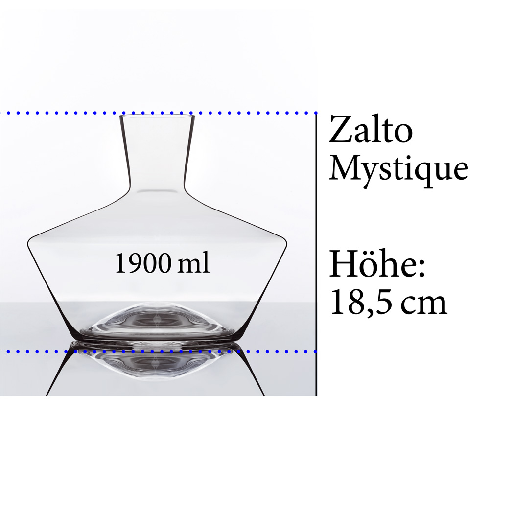 Ein Dekanter ist ein besonderes Glasgefäß in dem sich Wein besser entfalten kann. Die Zalto Glasmanufaktur hebt dies mit ihrem speziellen Dekanter auf neue Höhen. Der handgearbeitete, mundgeblasene Dekanter Mystique besteht aus bleioxidfreiem Glas und ist somit resistent regen Trübung. Mit seiner bauchigen Form, besitzt er eine sehr breite Oberfläche, die gut mit der Luft reagiert und so den Geschmack des Weins noch besser entfalten kann.