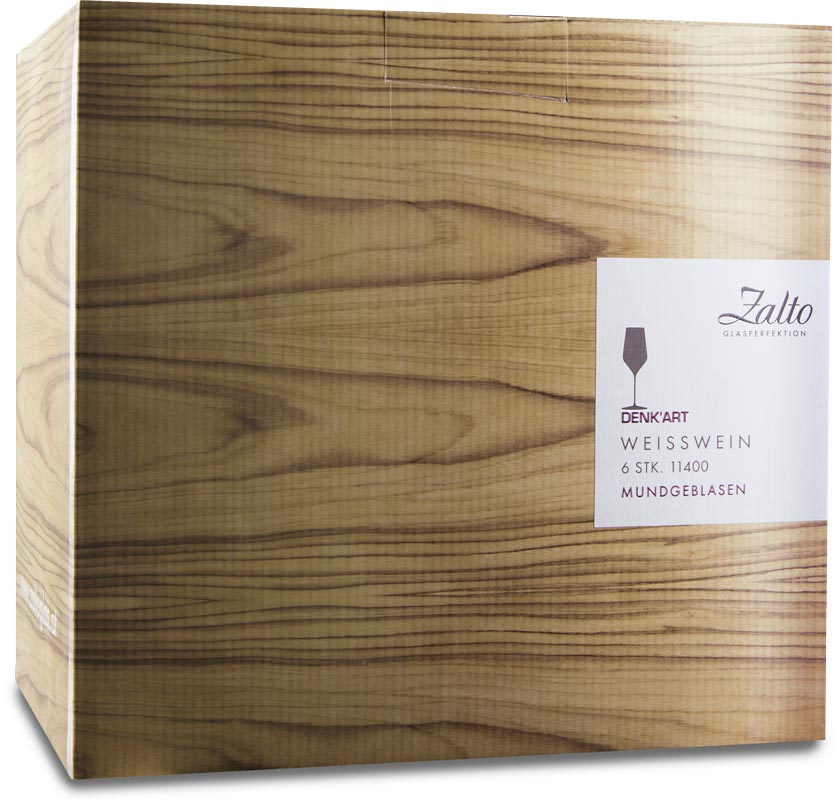 Unsere exklusiven Weißweingläser werden von der österreichischen Premiumweinglas-Marke Zalto hergestellt. Zalto-Weingläser werden mundgeblasen und sind außerdem aus bleifreien Kristallglas.