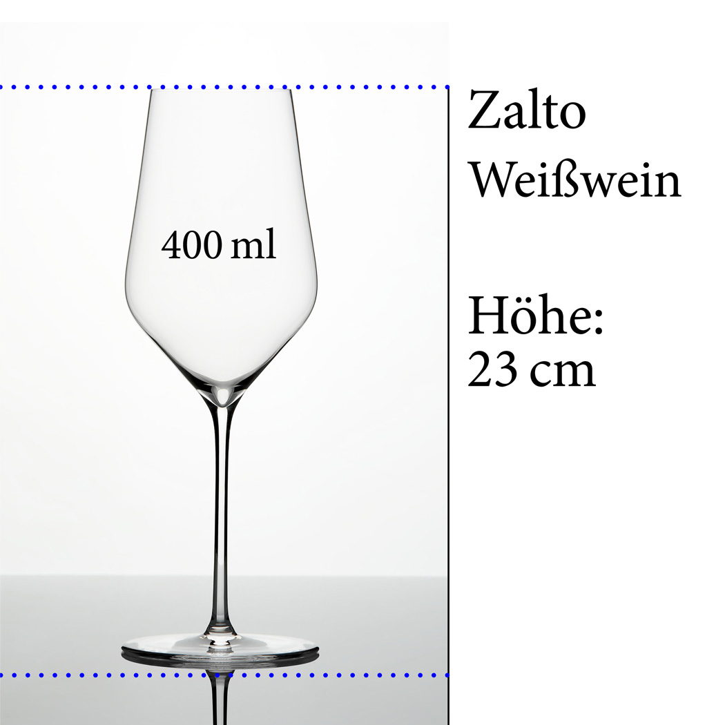 Ein edles Weißweinglas muss im Durchmesser kleiner sein als ein Rotweinglas. Weißwein muss kalt serviert werden und bei kleinen Weingläsern erwärmt sich der Wein langsamer. Die Zalto Weißwein-Weingläser sind hauchdünn und können die Mineralität des Weines besser hervorheben und somit auch die filigranen Aromen unterstreichen, die in zu großen Gläsern verloren gehen.